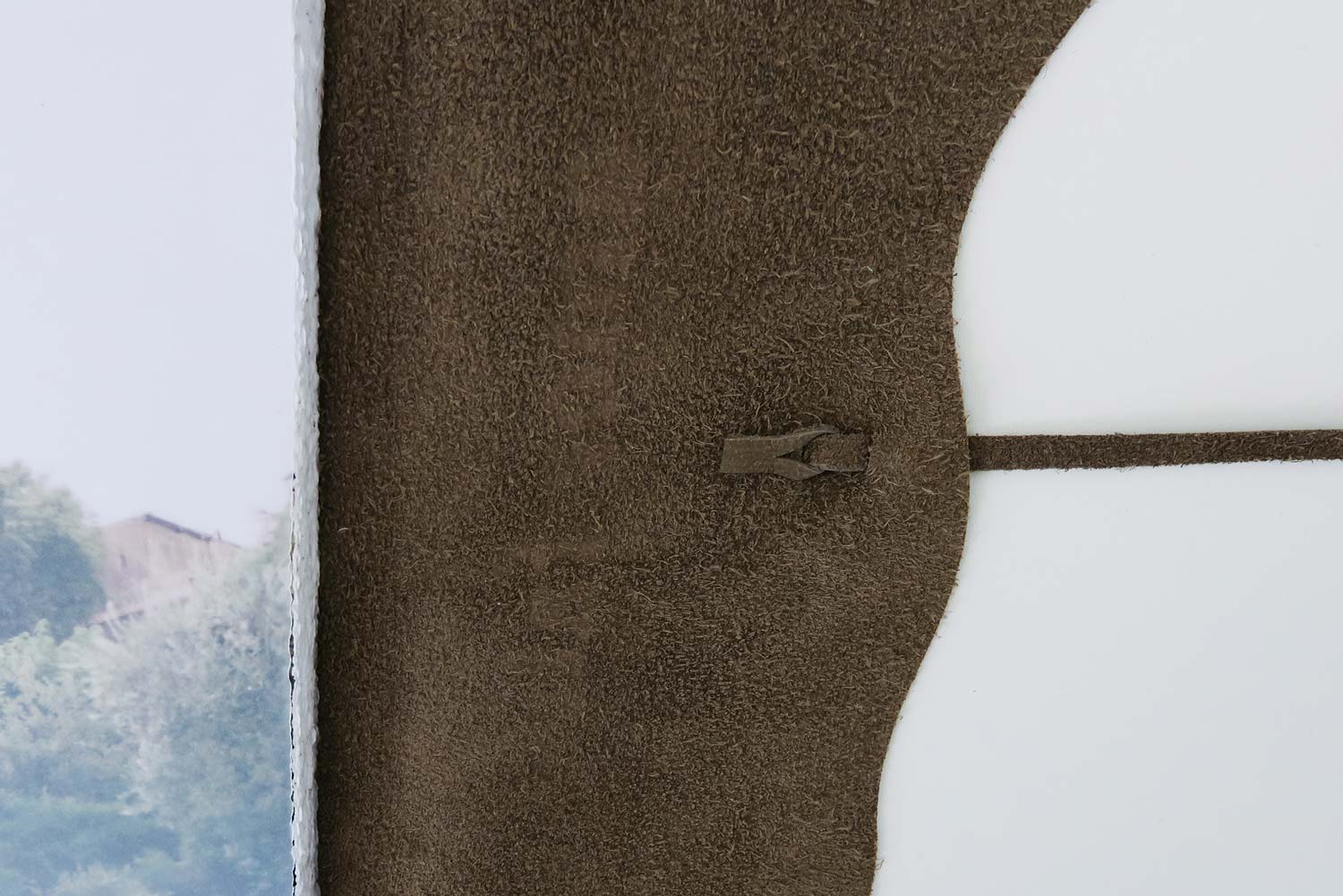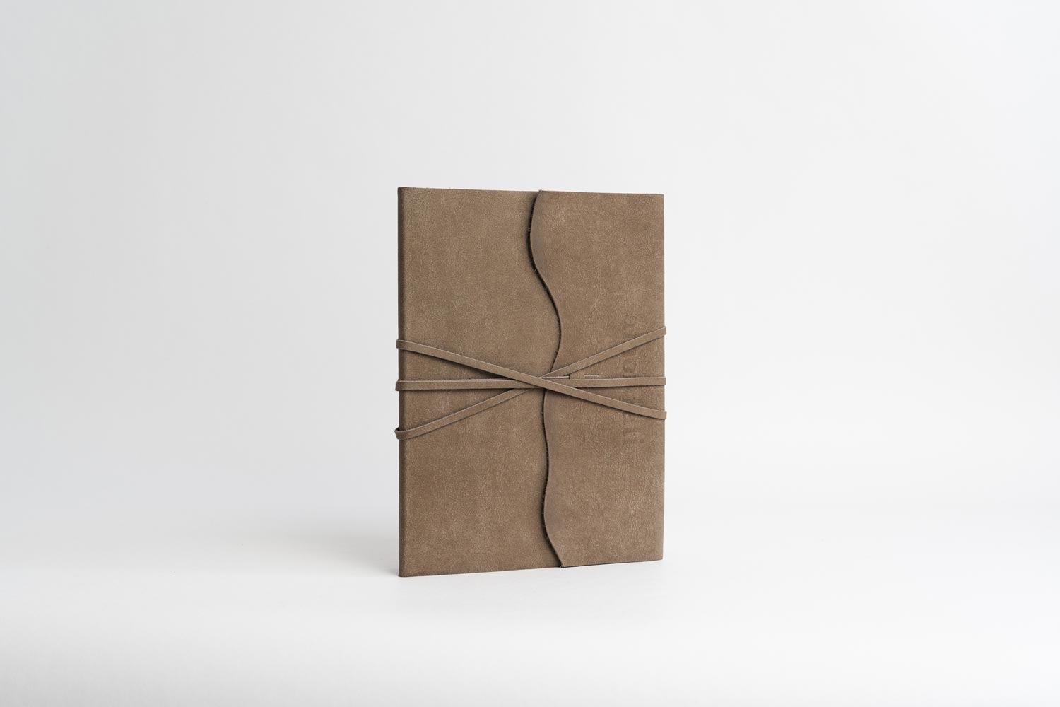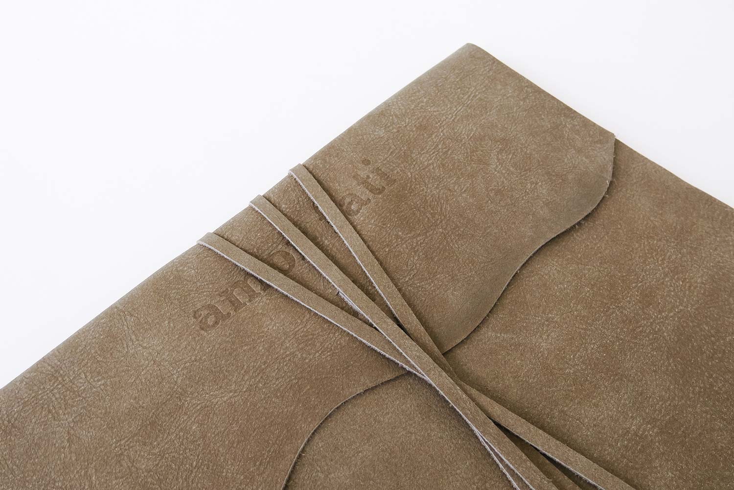Italian full grain distressed leather wrap for a rich, textured finish – straight or natural finished flap edge
