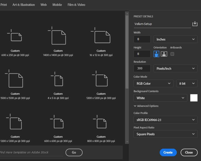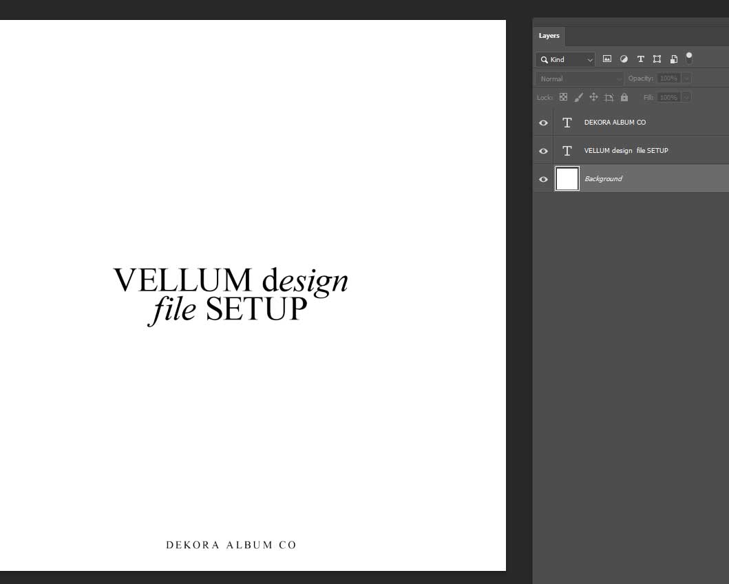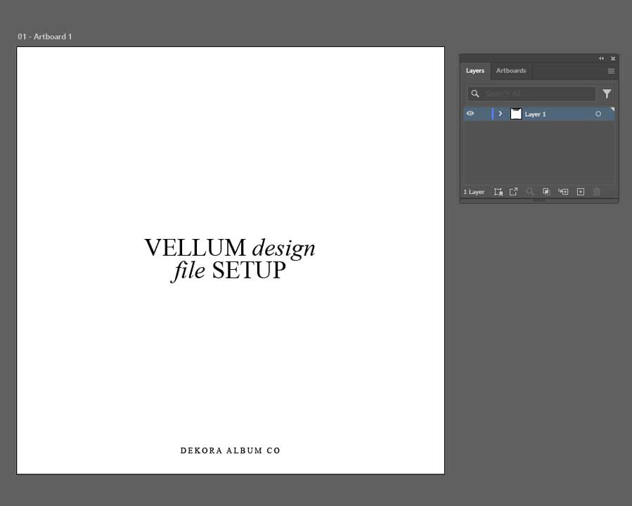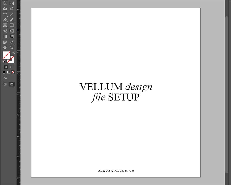 Create your vellum design in Photoshop, Illustrator, or InDesign as a ½ spread (1 page) at your album size (e.g. 8×8) on a white background. This will ensure the vellum sits correctly over the first page of your album.